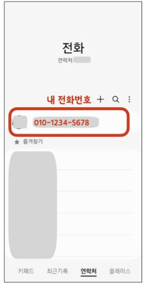 연락처의 맨 위에 뜨는 번호가 내 전화번호입니다. 이렇게 간단한 방법으로 내 전화번호를 확인할 수 있습니다.