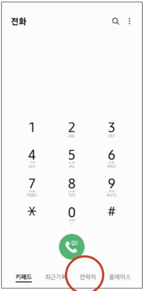 전화 걸기 화면에서 맨 아래의 <연락처>를 선택해 주세요