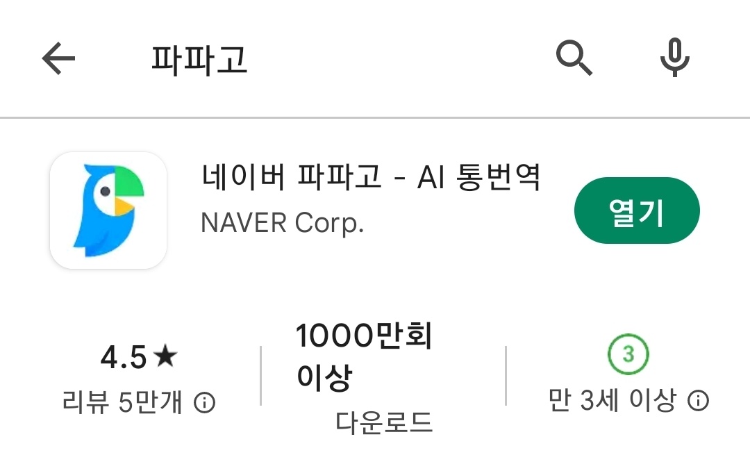 번역 어플은 많습니다. 그중에서 1000만 회 이상 다운로드되었다는, 네이버 파파고를 이용해보겠습니다.