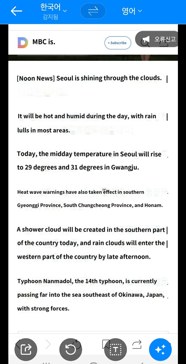 짠~ 몇 초 후 영어로 번역된 화면이 나타납니다. 간단하지요?